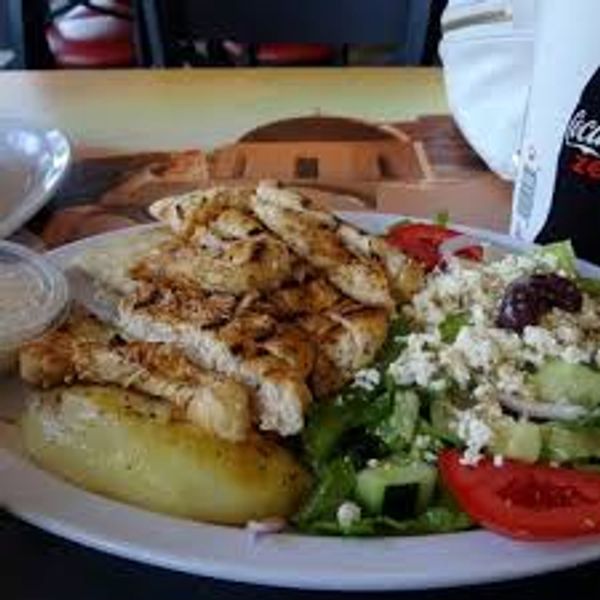 Delicious Greek style chicken marinated to perfection and served with Greek salad.