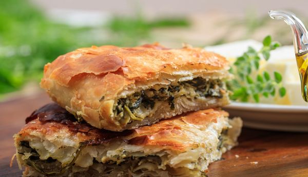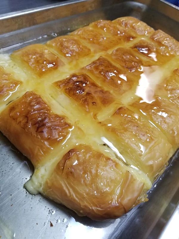 A traditional Greek dessert made from phyllo dough, honey, nuts and nutmeg